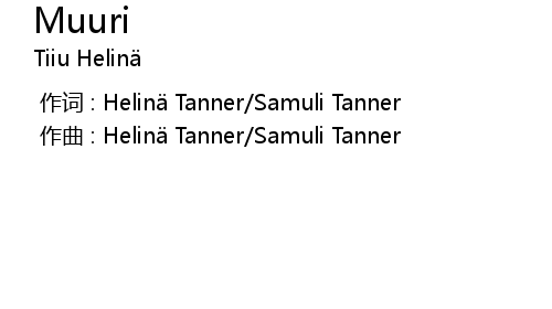 | [00:00.000] | 作词 : Helinä Tanner/Samuli Tanner |