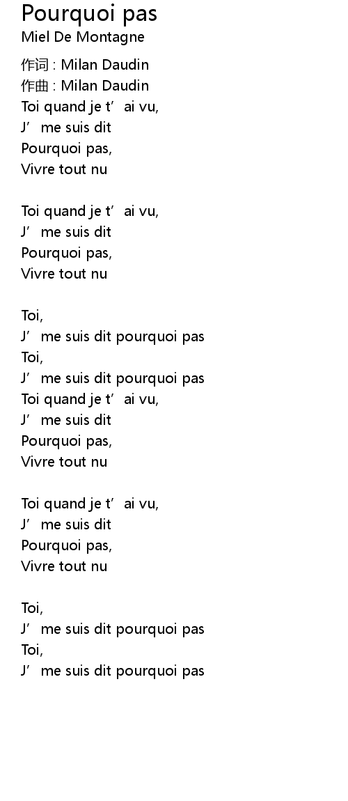 | Song | Pourquoi pas |