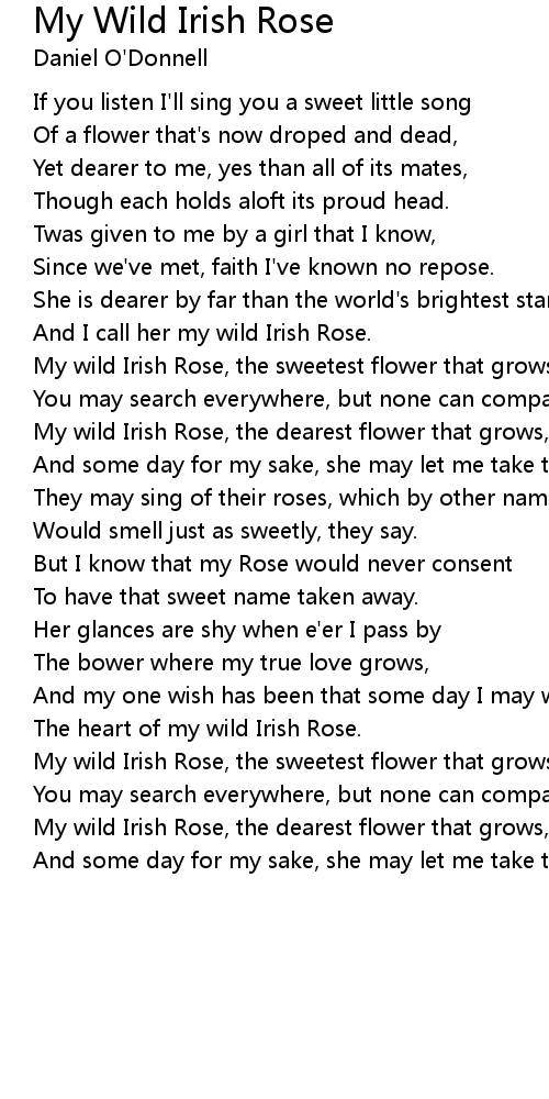 My wild Irish Rose, the sweetest flower that grows. |
