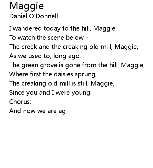 | The creaking old mill is still, Maggie, | |