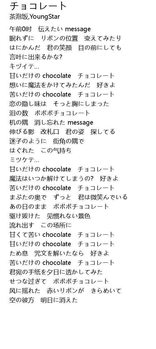 | [03:26.549] | 甘いだけの chocolate チョコレート |