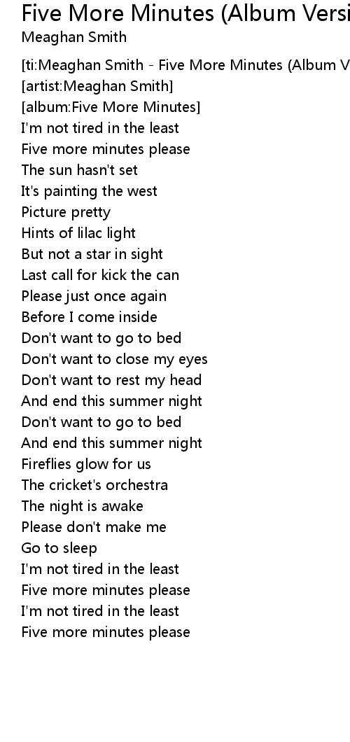 [ti:Meaghan Smith - Five More Minutes (Album Version)] |