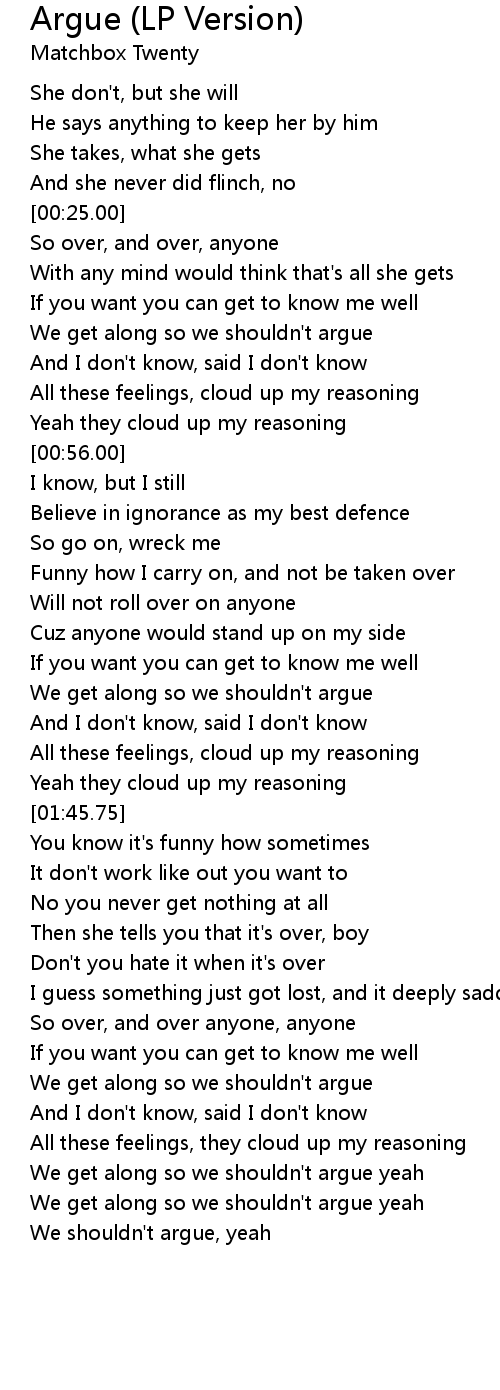 We get along so we shouldn't argue yeah |
