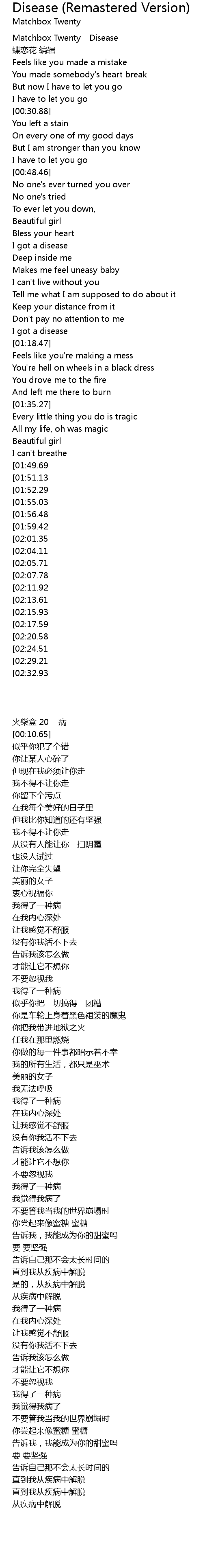 | [03:12.25][02:24.51] | Yeah well free of my disease |