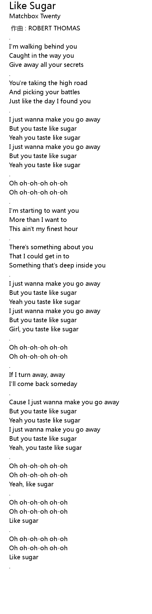 | [01:38.29] | Girl, you taste like sugar |