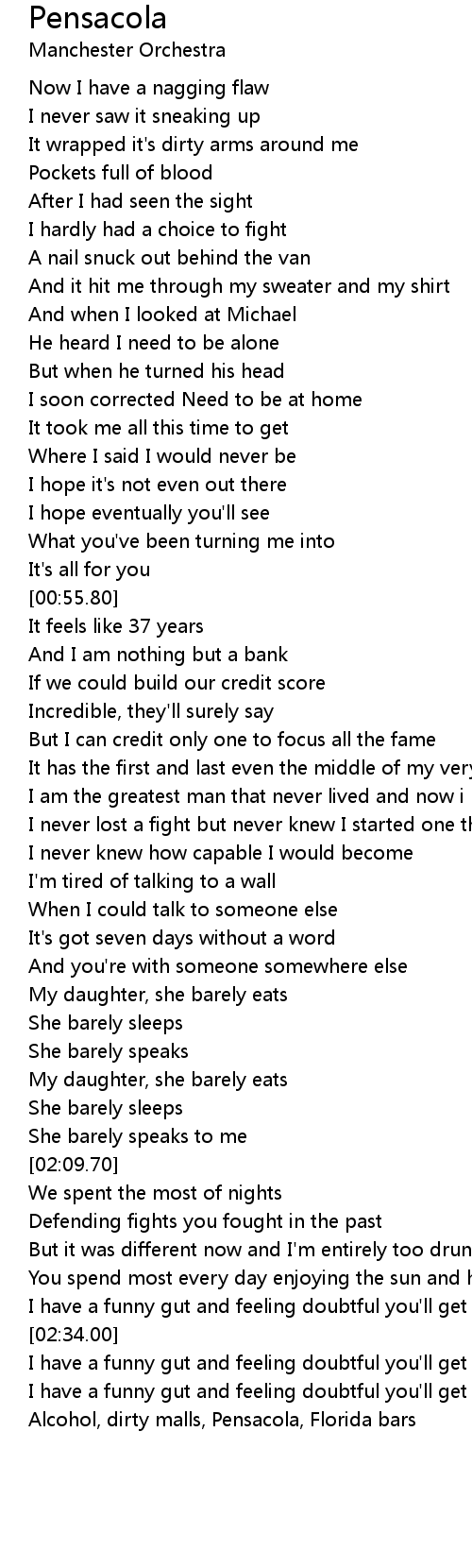 [02:50.56] Alcohol, dirty malls, Pensacola, Florida bars