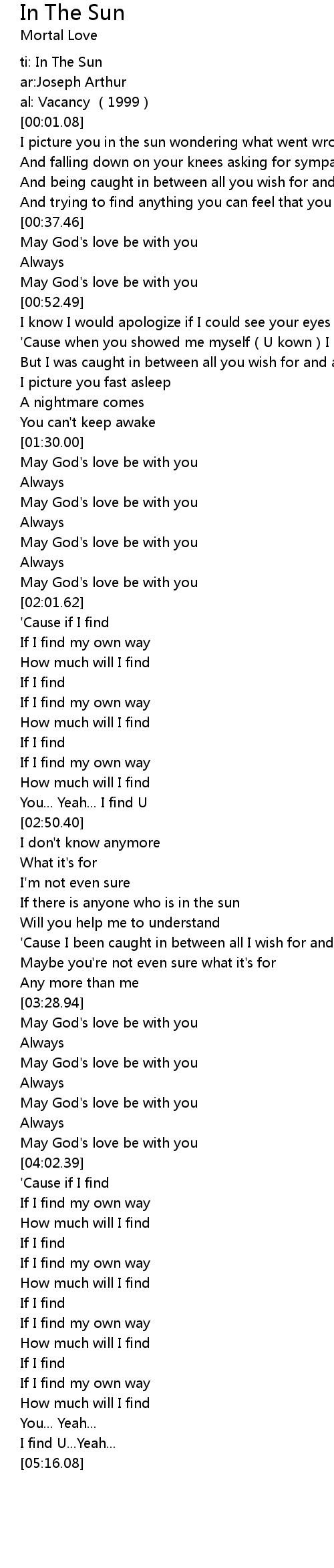 | [01:56.75] | May God' s love be with you |