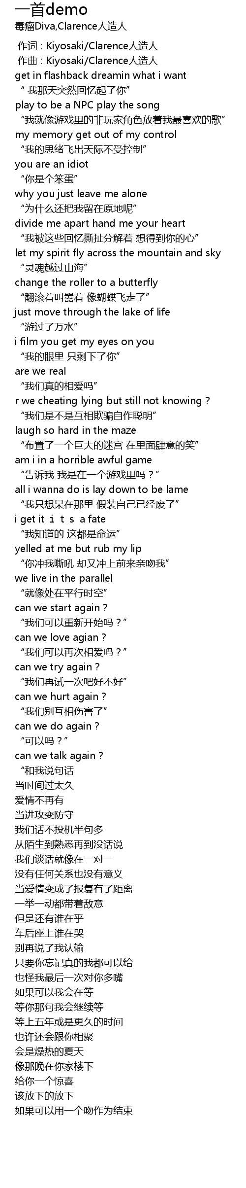 | [00:01.000] | 作曲 : Kiyosaki/Clarence人造人 |