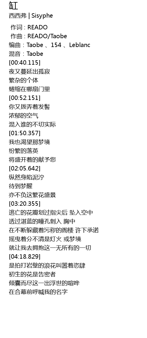 | [00:01.000] | zuò qǔ : READO Taobe |