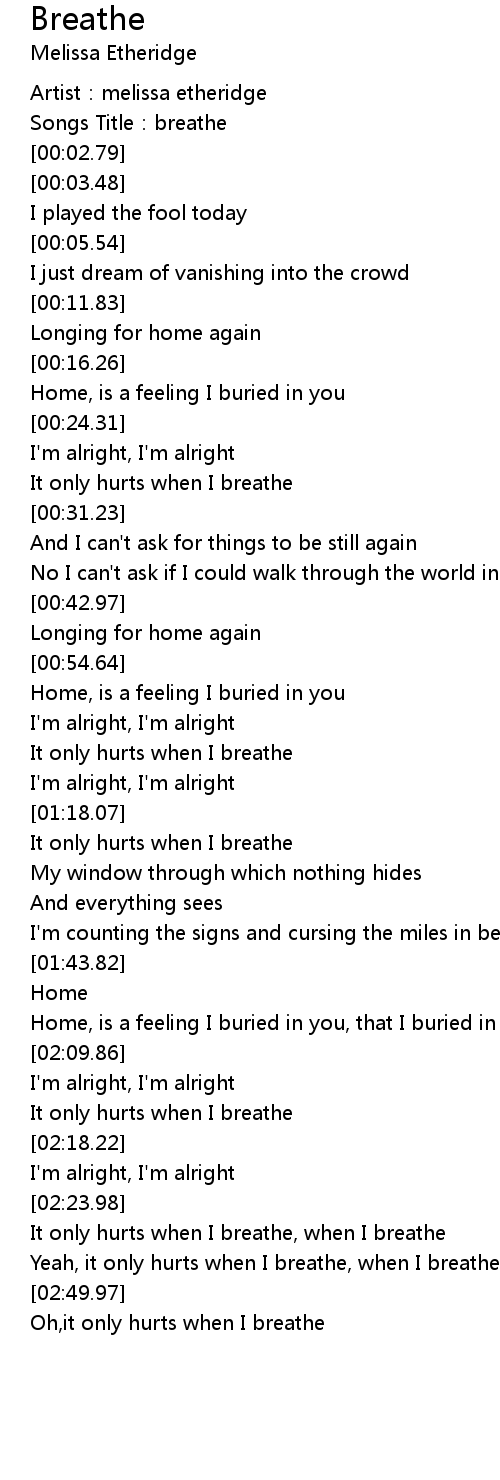 | [02:51.28] | Oh, it only hurts when I breathe |