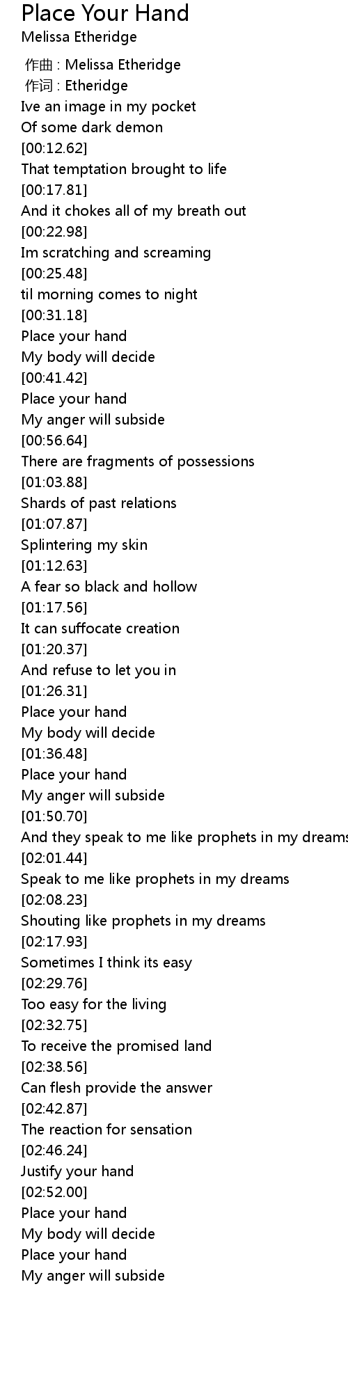 | [00:00.00] | 作曲 : Melissa Etheridge |