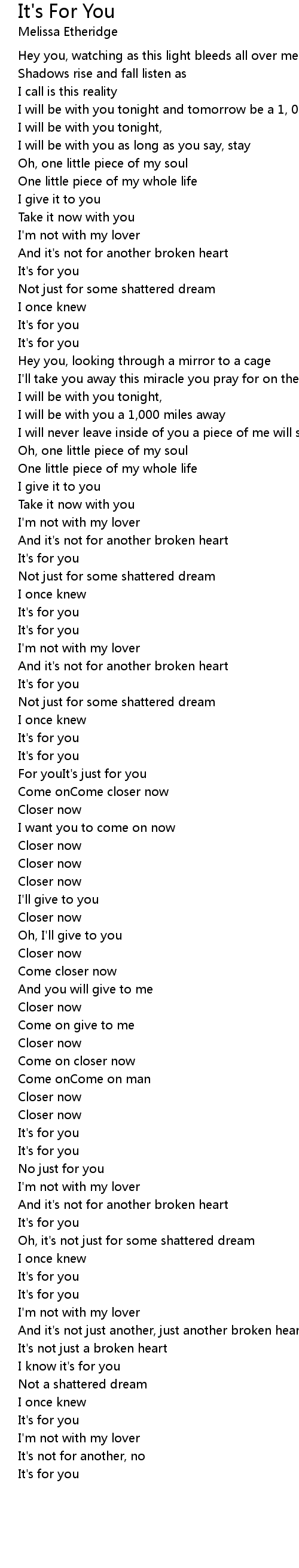And it's not for another broken heart |