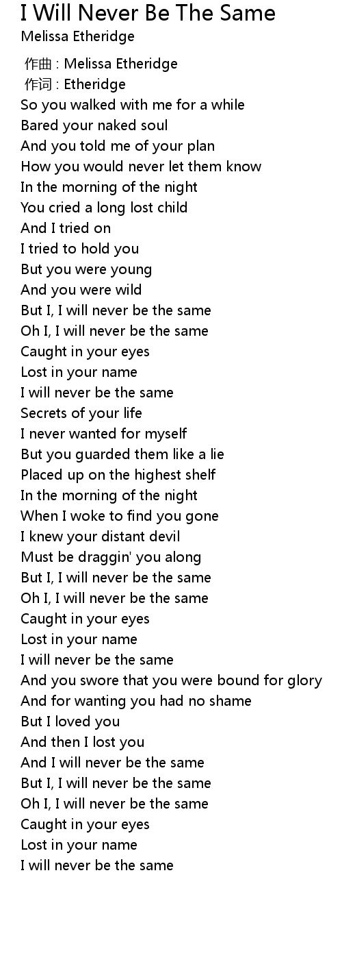 | [00:00.00] | 作曲 : Melissa Etheridge |