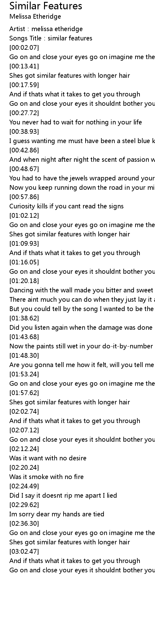| [00:00.92] | Artist: melissa etheridge |