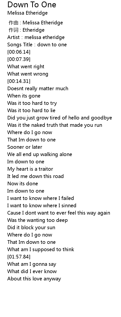 | [00:00.00] | 作曲 : Melissa Etheridge |