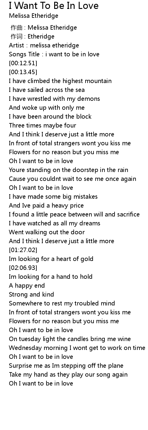 | [00:10.08] | Songs Title:i want to be in love |