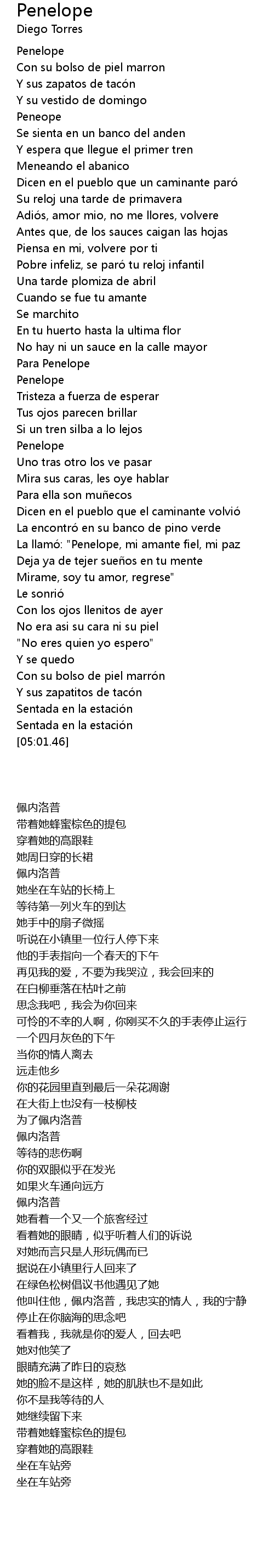 | [03:48.54] | La llamó: " Penelope, mi amante fiel, mi paz |