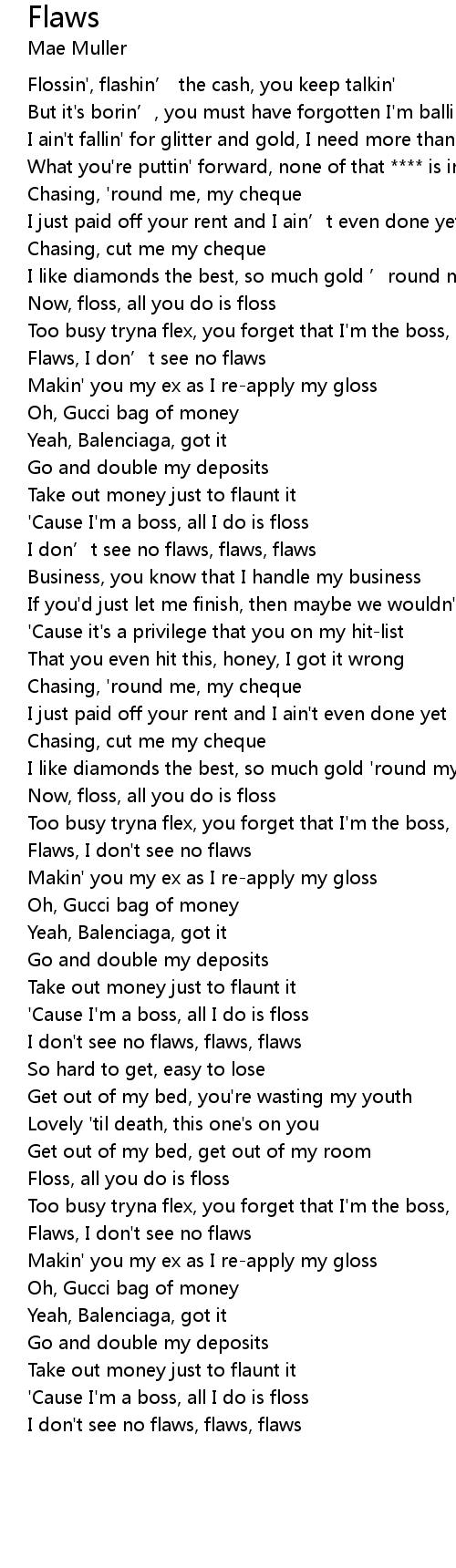 | [01:58.84] | I don' t see no flaws, flaws, flaws |