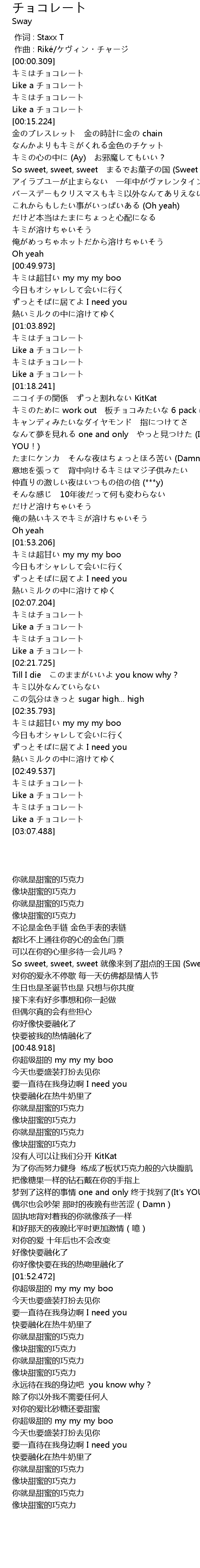 | [00:26.113] | So sweet, sweet, sweet guǒ zi guó Sweet! |