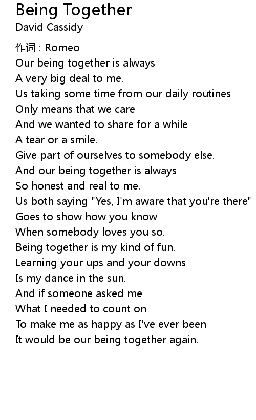 | Our being together is always | |