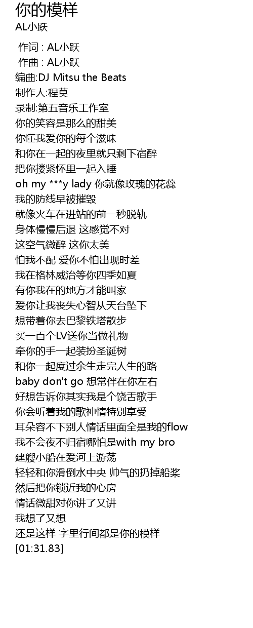 | [00:00.000] | 作词 : AL小跃 |