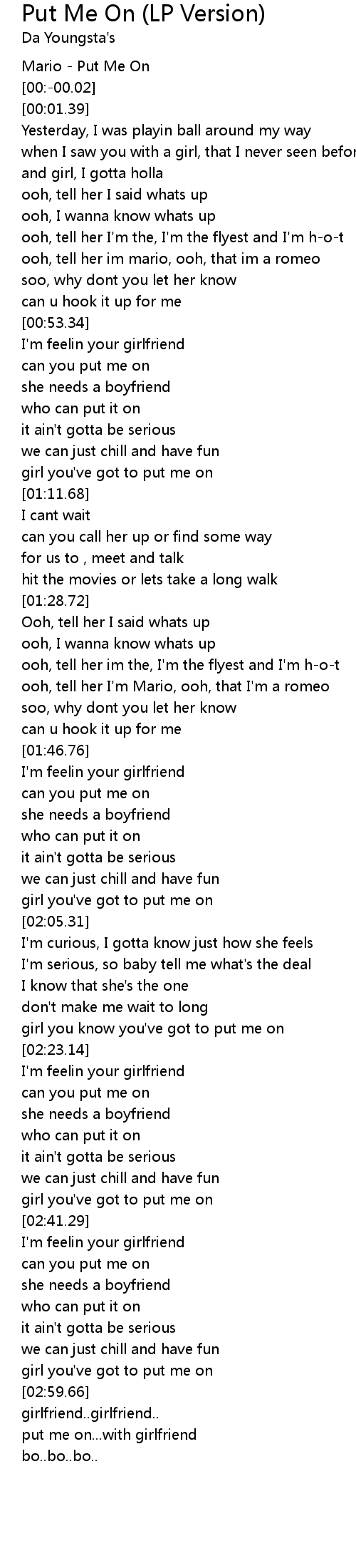 [03:08.74] put me on...with girlfriend