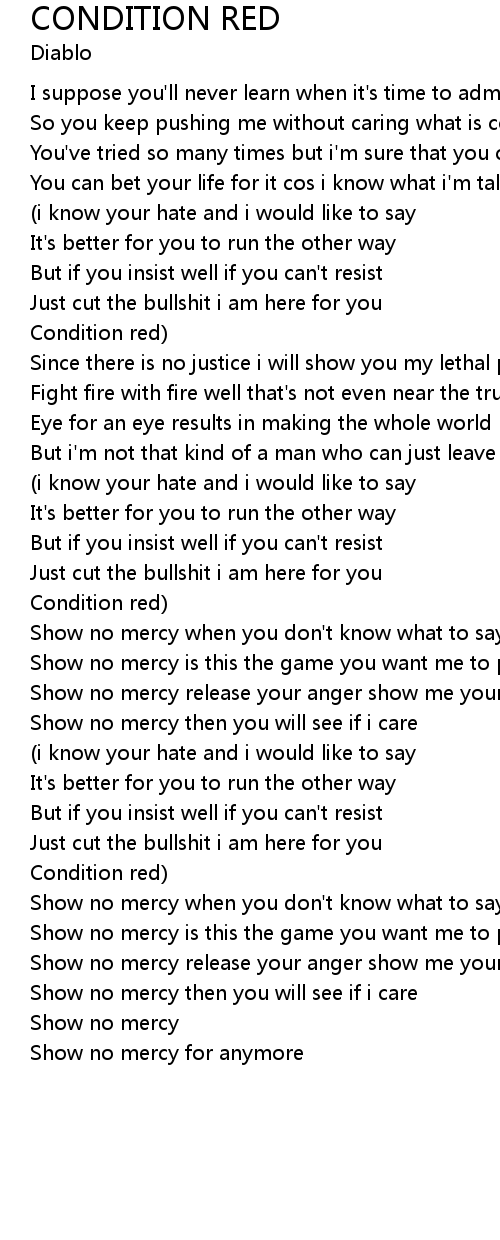 | Show no mercy release your anger show me your rage | |