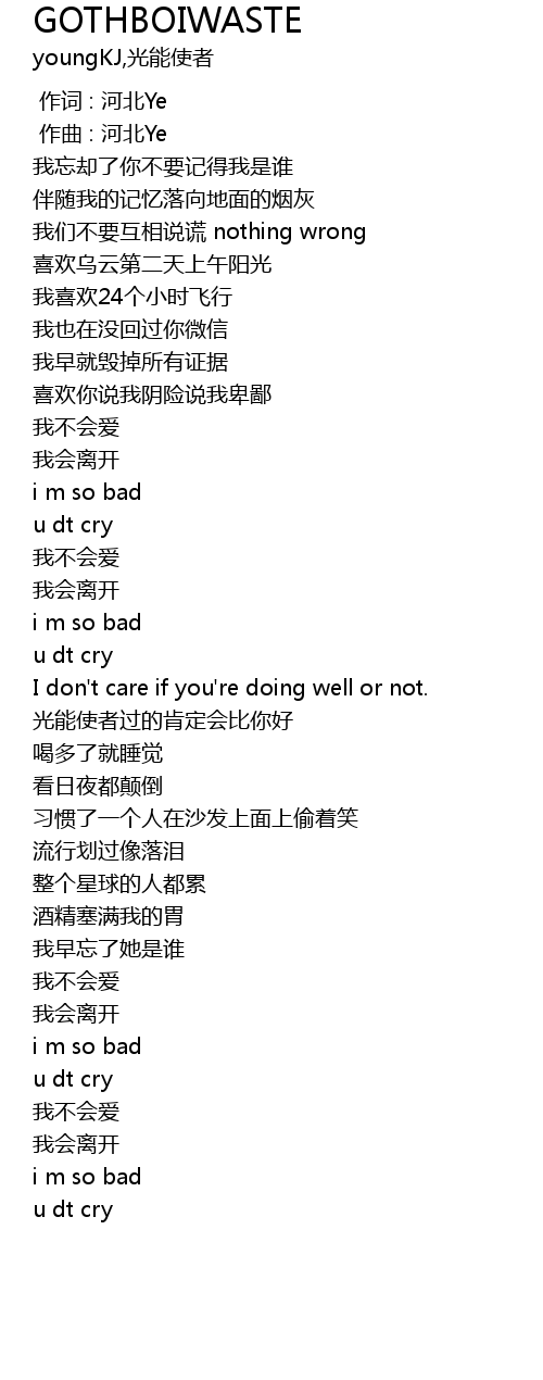 | [00:00.000] | 作词 : 河北Ye |