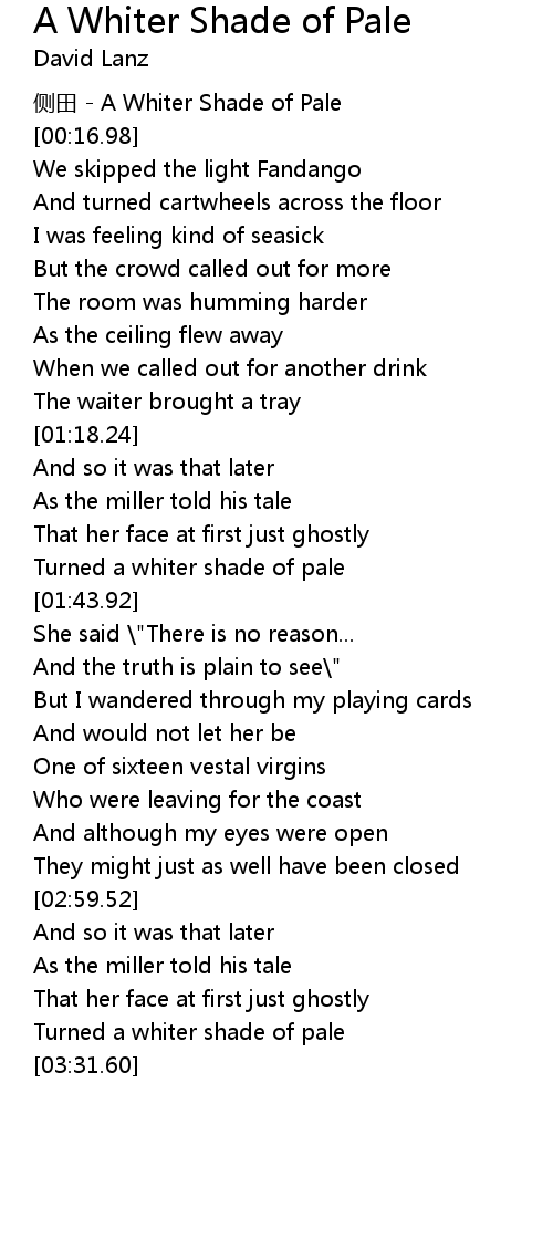 | [00:08.21] | cè tián A Whiter Shade of Pale |