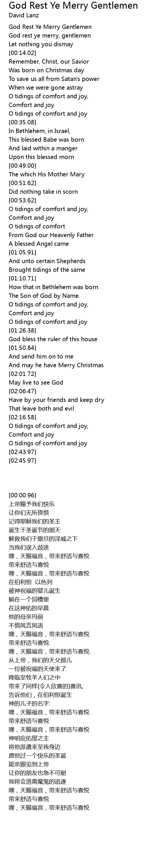 [00:00.96] God Rest Ye Merry Gentlemen