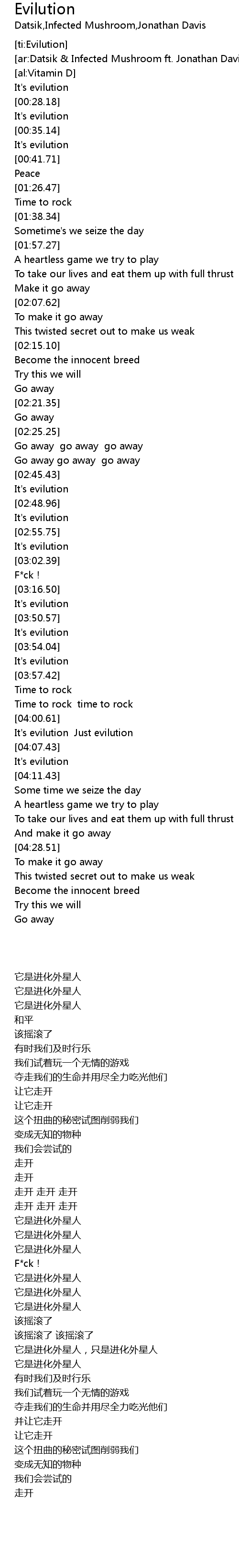 | [00:25.85] | It's evilution |