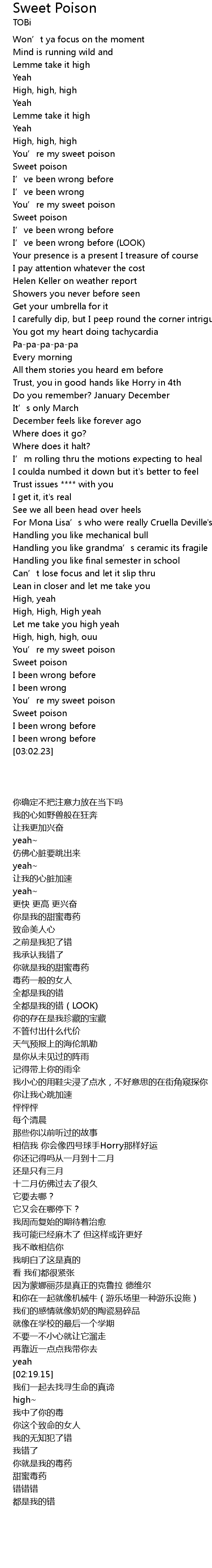 | [02:37.30] | You’re my sweet poison |