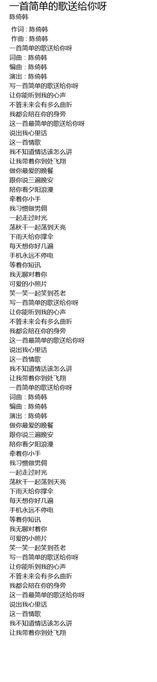 | [00:02.22] | 写一首简单的歌送给你呀 |