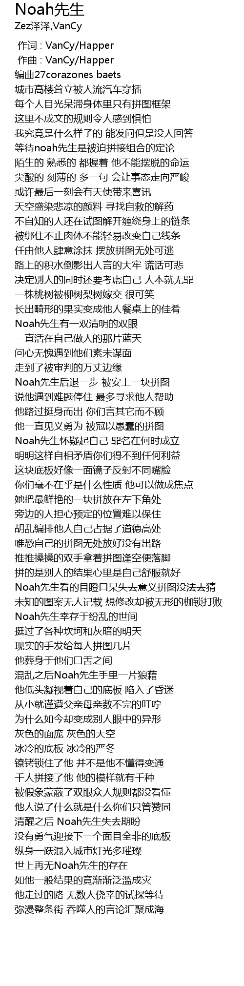 | [02:17.727] | Noah先生看的目瞪口呆失去意义拼图没法去猜 |