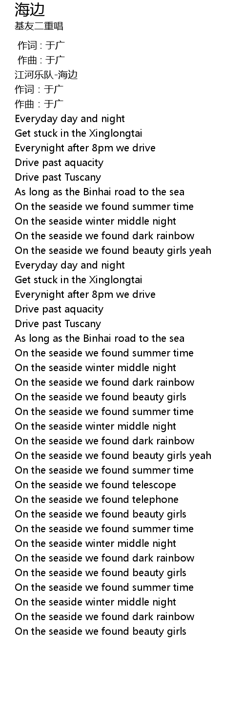 | [00:58.05] | On the seaside we found beauty girls yeah |