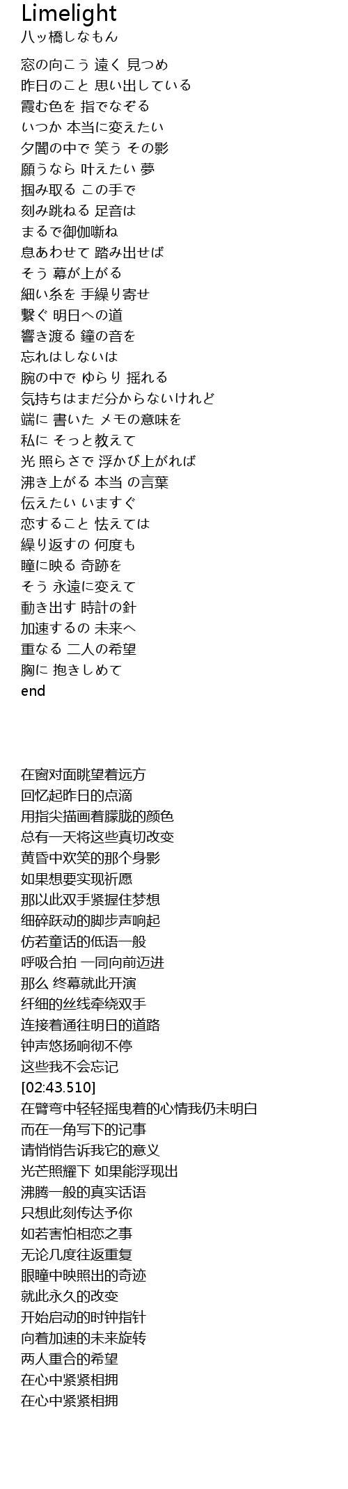 | [03:49.770] | 動き出す 時計の針 |