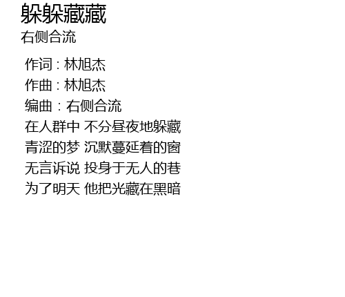 | [00:41.998] | 在人群中 不分昼夜地躲藏 |
