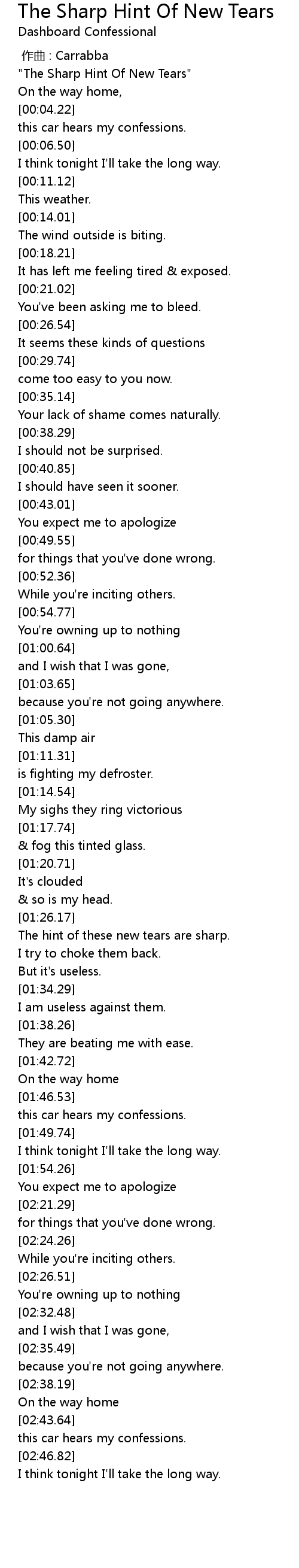 | [00:01.24] | "The Sharp Hint Of New Tears" |