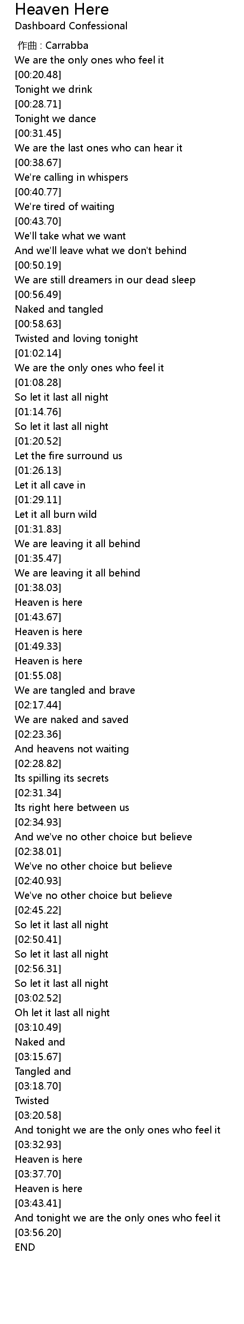 | [03:42.39] | Heaven is here |