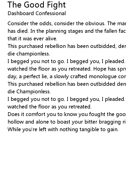 Does it comfort you to know you fought the good fight? Basking in your victory, hollow and alone to boast your bitter bragging rights to anyone who'll listen. While you're left with nothing tangible to gain. |