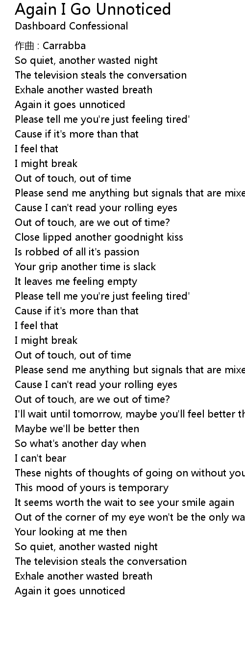 | Song | Again I Go Unnoticed |