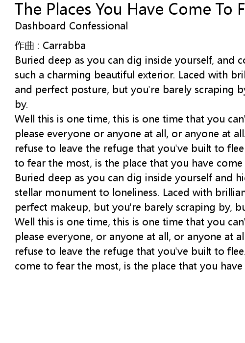 | Well this is one time, this is one time that you can' t fake it hard enough to please everyone, or anyone at all, or anyone at all. And the grave that you refuse to leave the refuge that you' ve built to flee. The places that you' ve come to fear the most, is the place that you have come to fear the most. |