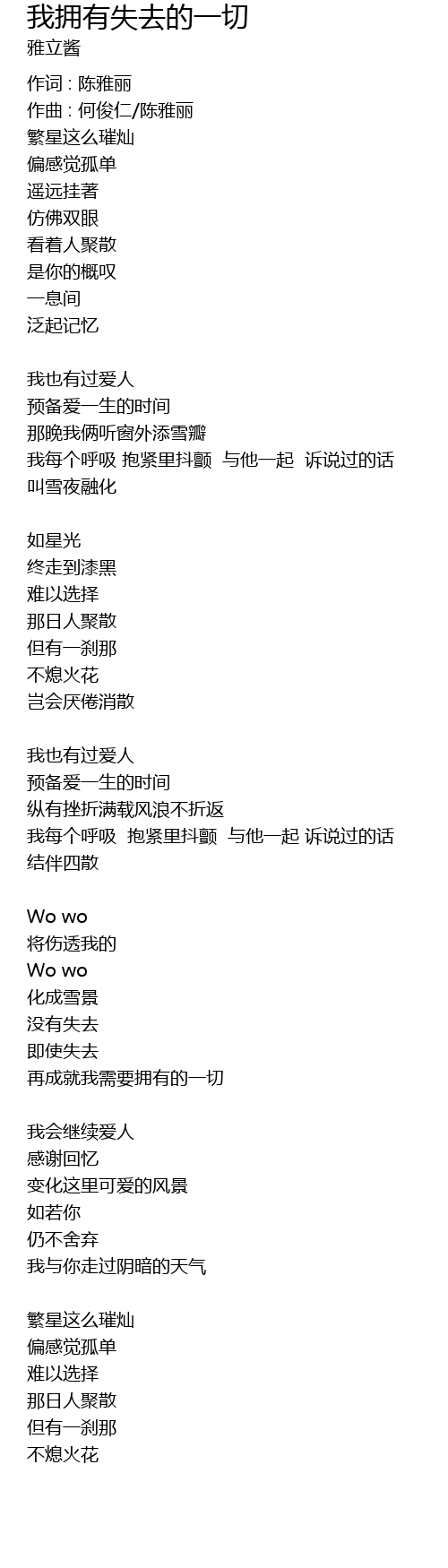 | 作曲 : 何俊仁/陈雅丽 | |