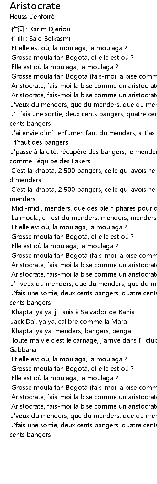 | [01:22.947] | Aristocrate, fais-moi la bise comme un aristocrate |