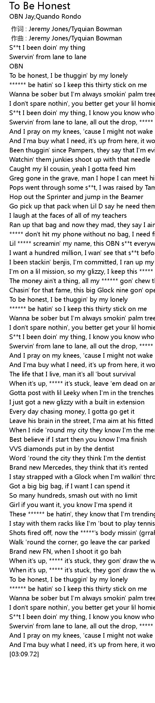 | [01:13.44] | Lil ***** screamin' my name, this OBN s**t everywhere I go |