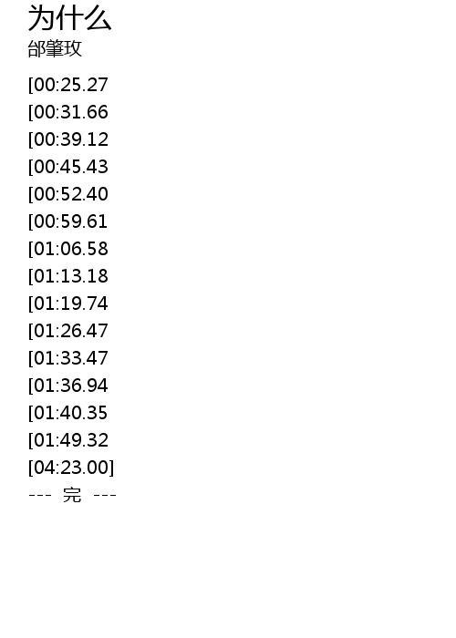 | [02:40.00][00:25.27] | 为什么我总需要你在我身旁 |