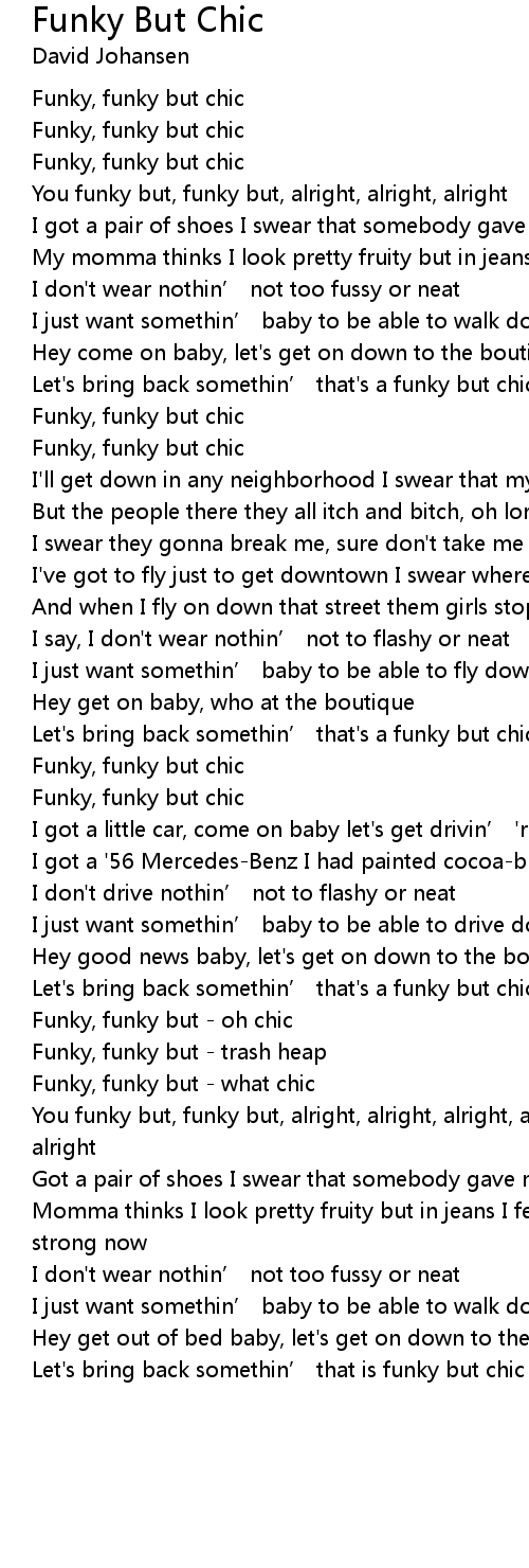 | You funky but, funky but, alright, alright, alright, alright, alright, alright, alright | |