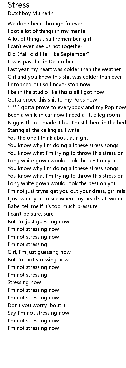 | [01:23.94] | You know why I'm doing all these stress songs |