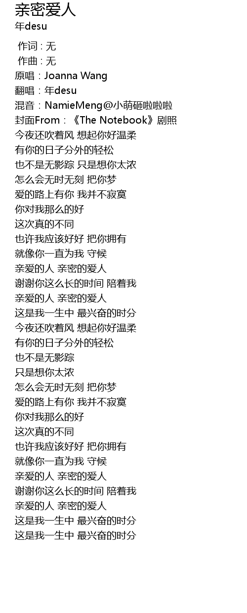 | [03:14.484] | 亲爱的人 亲密的爱人 |