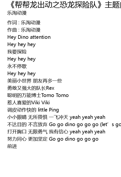 | Song | 《帮帮龙出动之恐龙探险队》主题曲 |